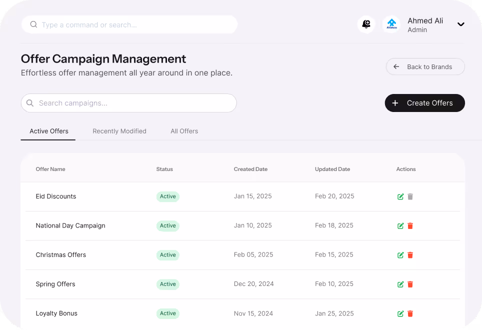 Set-up a new offer and start pushing it to every customer in under 5 minutes.